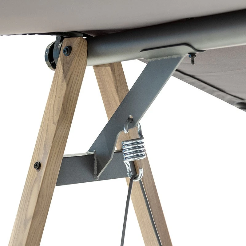 Le + produit : la balancelle dispose d’un design très tendance avec sa structure effet bois et son tissu coloris charbon.