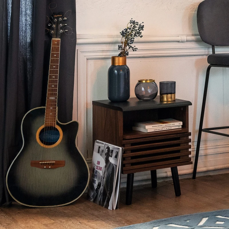 Table de chevet à 1 porte de la marque Atmosphera. Ce modèle Asmar apportera une touche d’élégance à votre intérieur avec son coloris noir et naturel foncé.