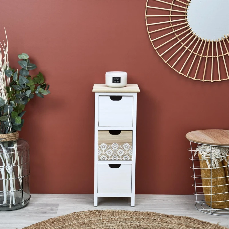 Avec ses motifs floraux, le chiffonnier apportera une touche bohème Ă votre pièce.Â