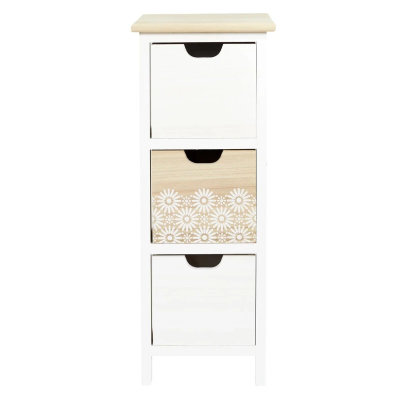 BĂ©nĂ©ficiez de rangement supplĂ©mentaire avec le chiffonnier 3 tiroirs Chic coloris naturel et blanc.Â