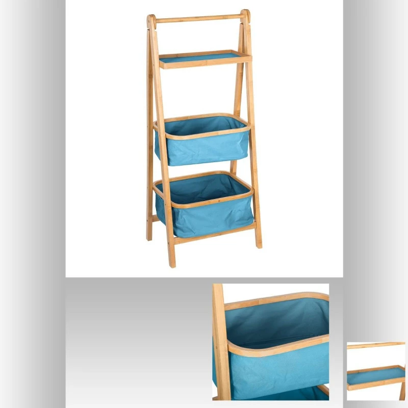 Colonne Pliante 2 Paniers Bleus Et 1 Plateau En Bambou