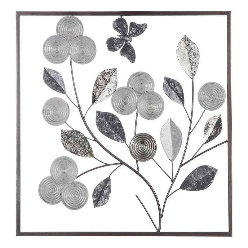 La tendance est à la déco en métal. Motif arbre stylisé avec feuilles, fleurs et papillon.