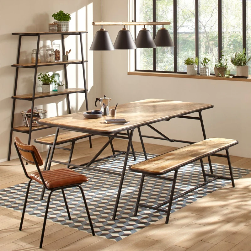 Meublez votre séjour avec les meubles de la collection Kalida en bois massif et métal d’un style si rétro qu’il en est résolument moderne.