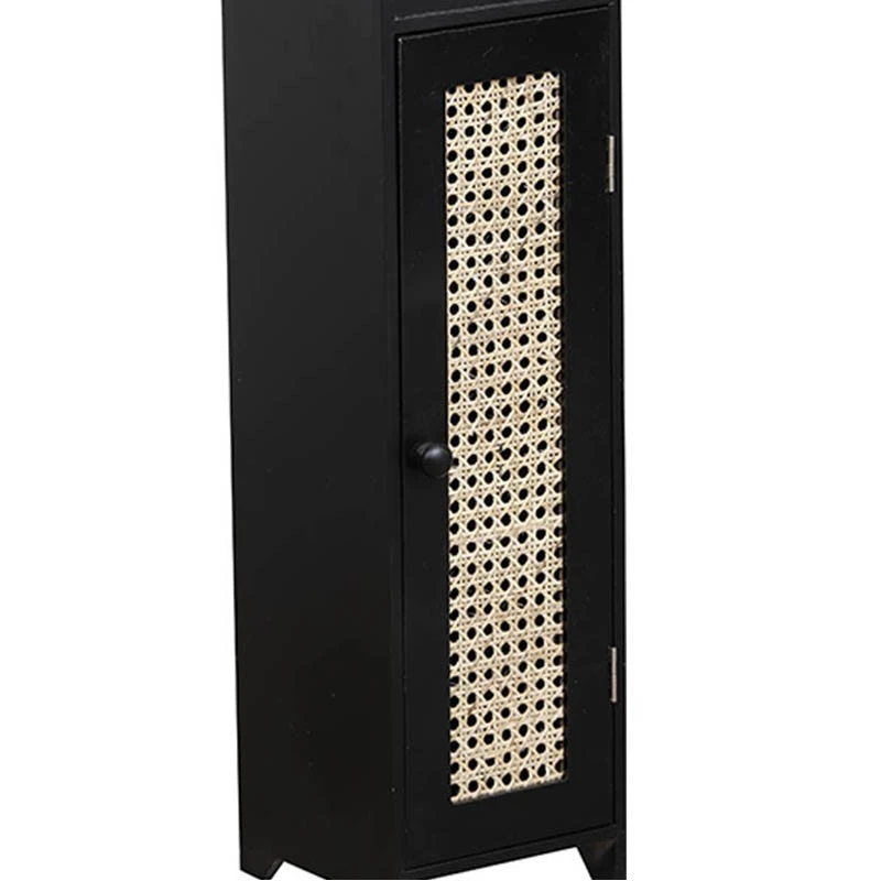 Découvrez le meuble réserve et dérouleur avec porte cannage en coloris noir.