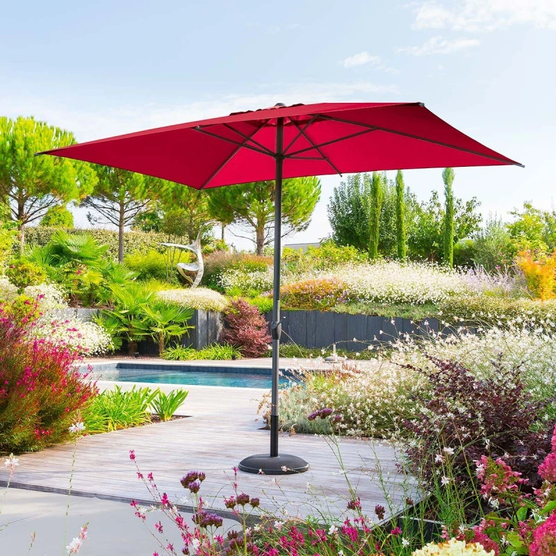 Profitez sereinement du soleil avec ce parasol rectangulaire 2×3 m Loompa coloris grenade de la marque Hespéride.