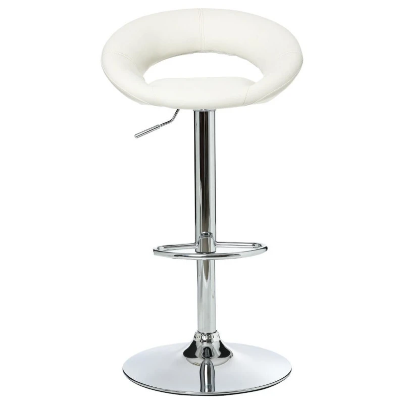Tabouret blanc au design très contemporain réglable en hauteur de 78 à 105 cm env. pied et piétement en acier chromé pour la solidité et le design moderne. Assise en polyuréthane pour la solidité et l’aspect cuir lisse. Réglable de la hauteur par un système de pompe à gaz. Coloris pied : CHROME. A monter soi-même en quelques minutes, notice jointe